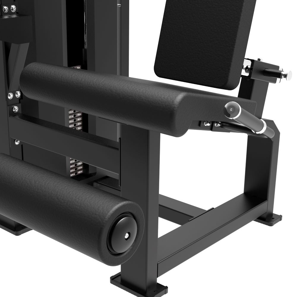 Tunturi Platinum sprava za ekstenziju nogu izrađena je za učinkovite i sigurne treninge prednjih bedrenih mišića. Zahvaljujući podesivom naslonu i valjku za stopala, uređaj osigurava ergonomsku poziciju za maksimalnu aktivaciju mišića. S robusnim čeličnim okvirom debljine 2,5 mm, težinskim blokom od 120 kg i glatkim radom, ova sprava nezaobilazan je dio svake profesionalne teretane.