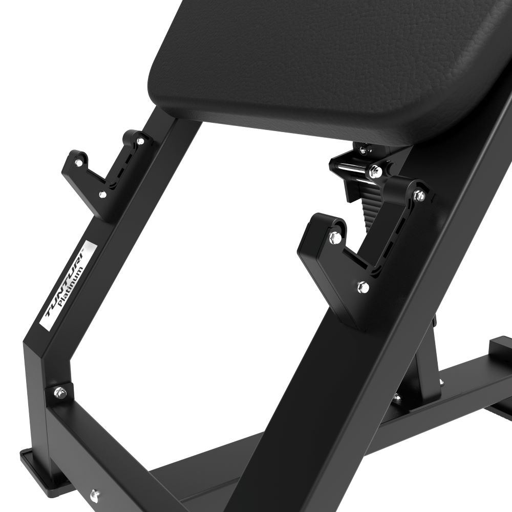 Tunturi Platinum Preacher Curl konstruiran je za vrhunsku aktivaciju bicepsa. Zahvaljujući ergonomskom naslonu za ruke i opterećenju pomoću ploča (plate-loaded), možete se potpuno usredotočiti na kontrolirane i izolirane pokrete. Ova sprava je savršena za korisnike koji žele snažnije i oblikovanije ruke.
